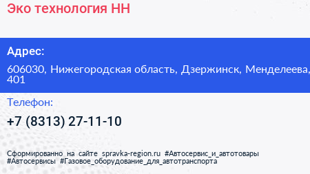 Эко-технология-НН по адресу 606030, Нижегородская область, Дзержинск, Менделеева, 401 в дальнейшем Организация, размещена в следующих категориях: