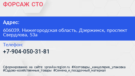 ФОРСАЖ, СТО по адресу 606039, Нижегородская область, Дзержинск, проспект Свердлова, 53а в дальнейшем Организация, размещена в следующих категориях: