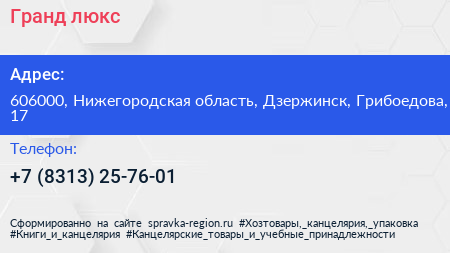 Гранд люкс по адресу 606000, Нижегородская область, Дзержинск, Грибоедова, 17 в дальнейшем Организация, размещена в следующих категориях:
