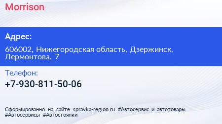 Morrison по адресу 606002, Нижегородская область, Дзержинск, Лермонтова, 7 в дальнейшем Организация, размещена в следующих категориях: