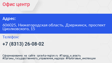 Офис-центр по адресу 606025, Нижегородская область, Дзержинск, проспект Циолковского, 15 в дальнейшем Организация, размещена в следующих категориях: