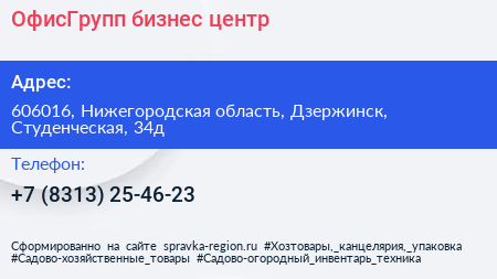 ОфисГрупп, бизнес-центр по адресу 606016, Нижегородская область, Дзержинск, Студенческая, 34д в дальнейшем Организация, размещена в следующих категориях:
