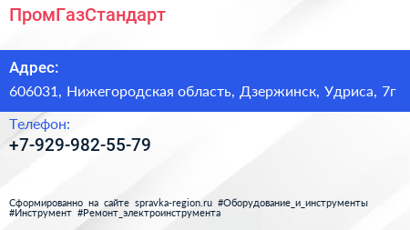 ПромГазСтандарт по адресу 606031, Нижегородская область, Дзержинск, Удриса, 7г в дальнейшем Организация, размещена в следующих категориях: