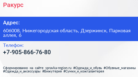 Ракурс по адресу 606008, Нижегородская область, Дзержинск, Парковая аллея, 6 в дальнейшем Организация, размещена в следующих категориях: