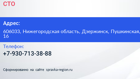 СТО по адресу 606033, Нижегородская область, Дзержинск, Пушкинская, 16 в дальнейшем Организация, размещена в следующих категориях: