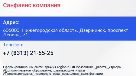 Санфаянс, компания по адресу 606000, Нижегородская область, Дзержинск, проспект Ленина, 71 в дальнейшем Организация, размещена в следующих категориях: