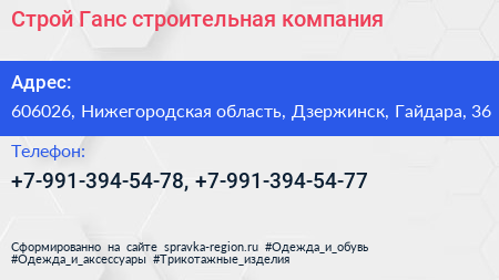 Строй-Ганс, строительная компания по адресу 606026, Нижегородская область, Дзержинск, Гайдара, 36 в дальнейшем Организация, размещена в следующих категориях: