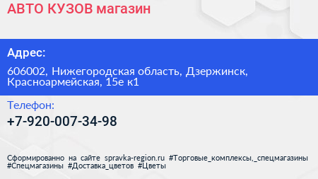 АВТО-КУЗОВ, магазин по адресу 606002, Нижегородская область, Дзержинск, Красноармейская, 15е к1 в дальнейшем Организация, размещена в следующих категориях: