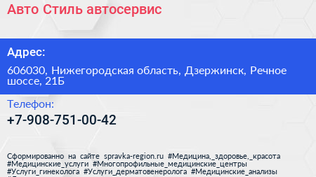 Авто-Стиль, автосервис по адресу 606030, Нижегородская область, Дзержинск, Речное шоссе, 21Б в дальнейшем Организация, размещена в следующих категориях: