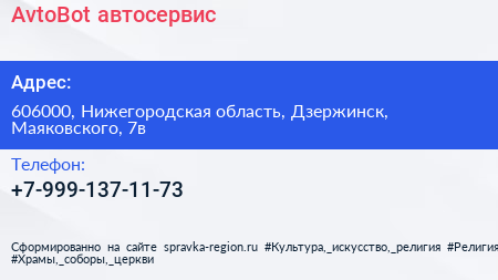 AvtoBot, автосервис по адресу 606000, Нижегородская область, Дзержинск, Маяковского, 7в в дальнейшем Организация, размещена в следующих категориях: