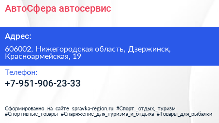АвтоСфера, автосервис по адресу 606002, Нижегородская область, Дзержинск, Красноармейская, 19 в дальнейшем Организация, размещена в следующих категориях: