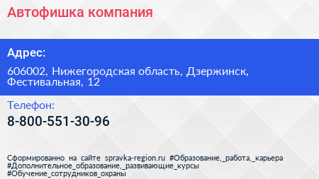 Автофишка, компания по адресу 606002, Нижегородская область, Дзержинск, Фестивальная, 12 в дальнейшем Организация, размещена в следующих категориях: