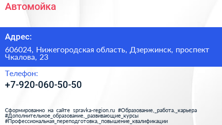 Автомойка по адресу 606024, Нижегородская область, Дзержинск, проспект Чкалова, 23 в дальнейшем Организация, размещена в следующих категориях: