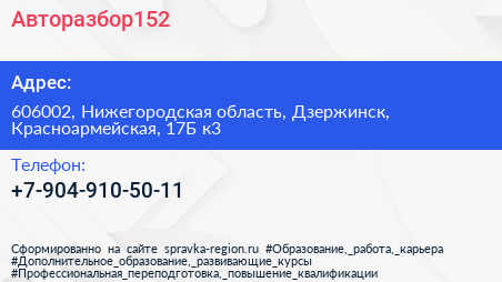 Авторазбор152 по адресу 606002, Нижегородская область, Дзержинск, Красноармейская, 17Б к3 в дальнейшем Организация, размещена в следующих категориях: