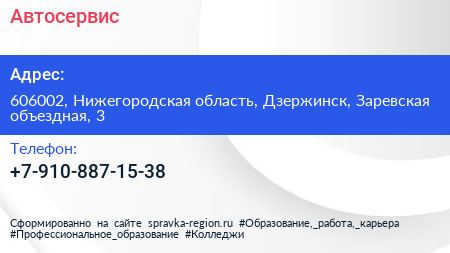 Автосервис по адресу 606002, Нижегородская область, Дзержинск, Заревская объездная, 3 в дальнейшем Организация, размещена в следующих категориях: