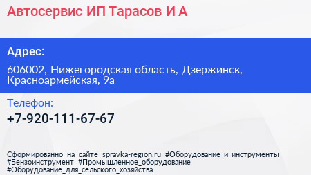 Автосервис, ИП Тарасов И.А. по адресу 606002, Нижегородская область, Дзержинск, Красноармейская, 9а в дальнейшем Организация, размещена в следующих категориях: