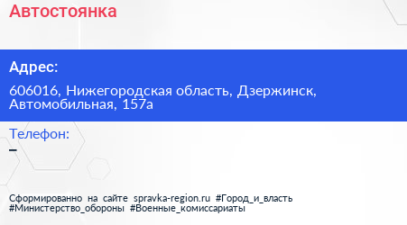 Автостоянка по адресу 606016, Нижегородская область, Дзержинск, Автомобильная, 157а в дальнейшем Организация, размещена в следующих категориях: