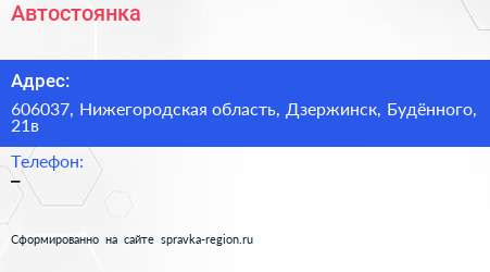 Автостоянка по адресу 606037, Нижегородская область, Дзержинск, Будённого, 21в в дальнейшем Организация, размещена в следующих категориях:
