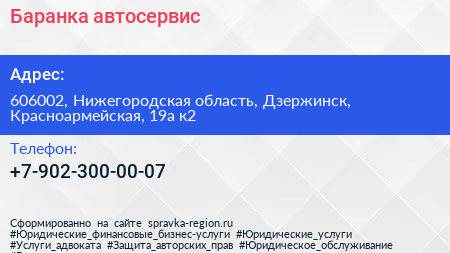 Баранка, автосервис по адресу 606002, Нижегородская область, Дзержинск, Красноармейская, 19а к2 в дальнейшем Организация, размещена в следующих категориях: