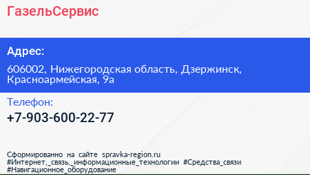 ГазельСервис по адресу 606002, Нижегородская область, Дзержинск, Красноармейская, 9а в дальнейшем Организация, размещена в следующих категориях: