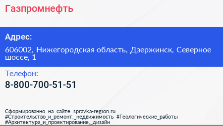 Газпромнефть по адресу 606002, Нижегородская область, Дзержинск, Северное шоссе, 1 в дальнейшем Организация, размещена в следующих категориях: