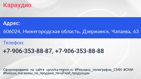 Караудио по адресу 606024, Нижегородская область, Дзержинск, Чапаева, 63 в дальнейшем Организация, размещена в следующих категориях: