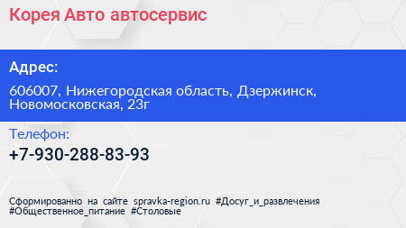 Корея-Авто, автосервис по адресу 606007, Нижегородская область, Дзержинск, Новомосковская, 23г в дальнейшем Организация, размещена в следующих категориях: