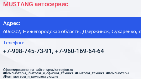 MUSTANG, автосервис по адресу 606002, Нижегородская область, Дзержинск, Сухаренко, 6 в дальнейшем Организация, размещена в следующих категориях: