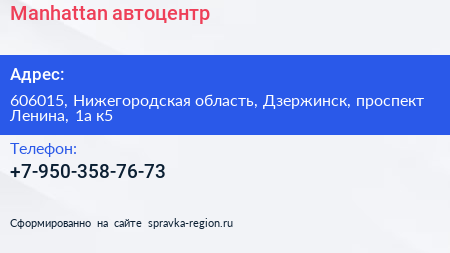 Manhattan, автоцентр по адресу 606015, Нижегородская область, Дзержинск, проспект Ленина, 1а к5 в дальнейшем Организация, размещена в следующих категориях: