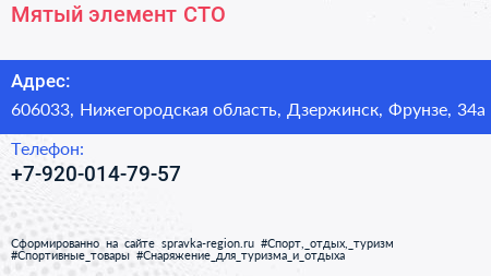 Мятый элемент, СТО по адресу 606033, Нижегородская область, Дзержинск, Фрунзе, 34а в дальнейшем Организация, размещена в следующих категориях: