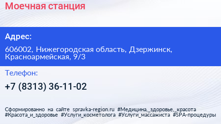 Моечная станция по адресу 606002, Нижегородская область, Дзержинск, Красноармейская, 9/3 в дальнейшем Организация, размещена в следующих категориях: