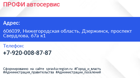 ПРОФИ, автосервис по адресу 606039, Нижегородская область, Дзержинск, проспект Свердлова, 67а к1 в дальнейшем Организация, размещена в следующих категориях: