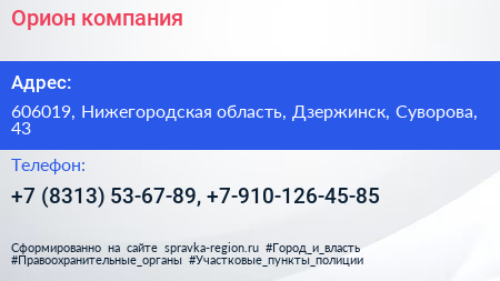Орион, компания по адресу 606019, Нижегородская область, Дзержинск, Суворова, 43 в дальнейшем Организация, размещена в следующих категориях: