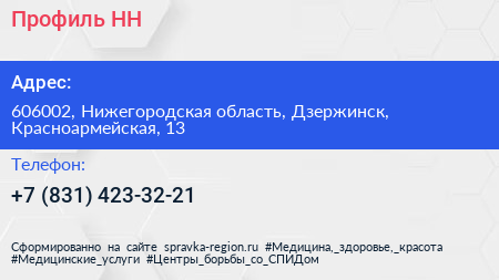 Профиль НН по адресу 606002, Нижегородская область, Дзержинск, Красноармейская, 13 в дальнейшем Организация, размещена в следующих категориях: