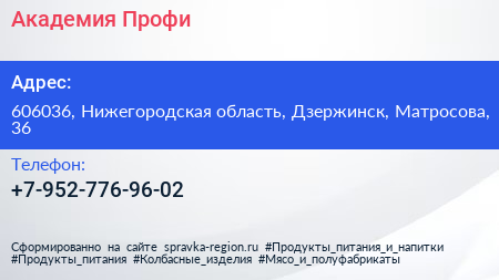 Академия Профи по адресу 606036, Нижегородская область, Дзержинск, Матросова, 36 в дальнейшем Организация, размещена в следующих категориях: