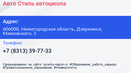 Авто Стиль, автошкола по адресу 606000, Нижегородская область, Дзержинск, Маяковского, 3 в дальнейшем Организация, размещена в следующих категориях: