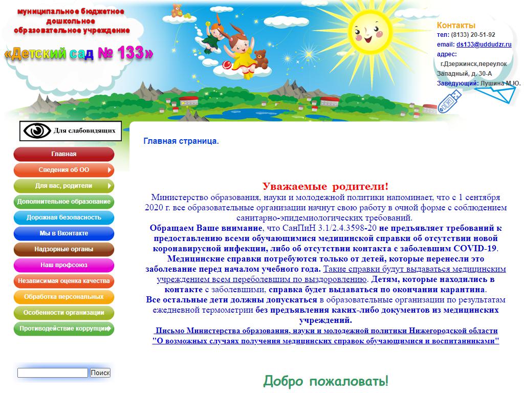 Детский сад №133, г. Дзержинск по адресу 606015, Нижегородская область, Дзержинск, Западный переулок, 30а в дальнейшем Организация, размещена в следующих категориях: