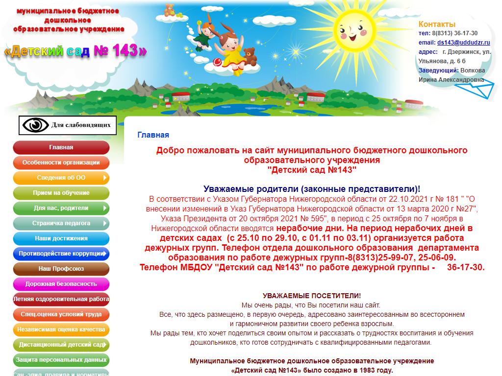 Детский сад №143, г. Дзержинск по адресу 606002, Нижегородская область, Дзержинск, Ульянова, 6Б в дальнейшем Организация, размещена в следующих категориях: