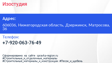 Изостудия по адресу 606036, Нижегородская область, Дзержинск, Матросова, 36 в дальнейшем Организация, размещена в следующих категориях: