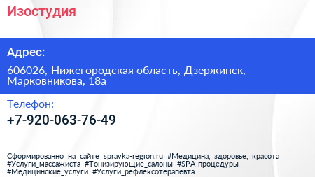 Изостудия по адресу 606026, Нижегородская область, Дзержинск, Марковникова, 18а в дальнейшем Организация, размещена в следующих категориях: