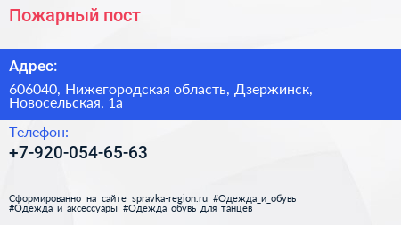 Пожарный пост по адресу 606040, Нижегородская область, Дзержинск, Новосельская, 1а в дальнейшем Организация, размещена в следующих категориях: