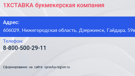 1ХСТАВКА, букмекерская компания по адресу 606029, Нижегородская область, Дзержинск, Гайдара, 59в в дальнейшем Организация, размещена в следующих категориях: