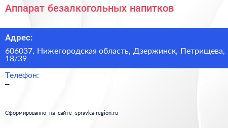 Аппарат безалкогольных напитков по адресу 606037, Нижегородская область, Дзержинск, Петрищева, 18/39 в дальнейшем Организация, размещена в следующих категориях:
