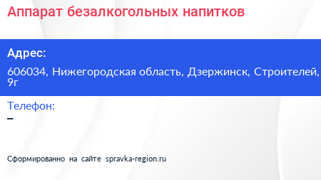 Аппарат безалкогольных напитков по адресу 606034, Нижегородская область, Дзержинск, Строителей, 9г в дальнейшем Организация, размещена в следующих категориях: