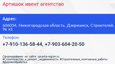 Артишок, ивент-агентство по адресу 606034, Нижегородская область, Дзержинск, Строителей, 9в к1 в дальнейшем Организация, размещена в следующих категориях: