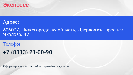 Экспресс по адресу 606007, Нижегородская область, Дзержинск, проспект Чкалова, 49 в дальнейшем Организация, размещена в следующих категориях: