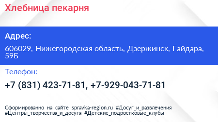 Хлебница, пекарня по адресу 606029, Нижегородская область, Дзержинск, Гайдара, 59Б в дальнейшем Организация, размещена в следующих категориях: