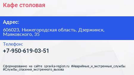 Кафе-столовая по адресу 606023, Нижегородская область, Дзержинск, Маяковского, 35 в дальнейшем Организация, размещена в следующих категориях: