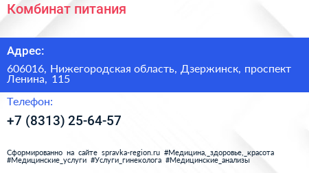 Комбинат питания по адресу 606016, Нижегородская область, Дзержинск, проспект Ленина, 115 в дальнейшем Организация, размещена в следующих категориях: