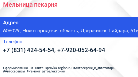 Мельница, пекарня по адресу 606029, Нижегородская область, Дзержинск, Гайдара, 61в в дальнейшем Организация, размещена в следующих категориях: